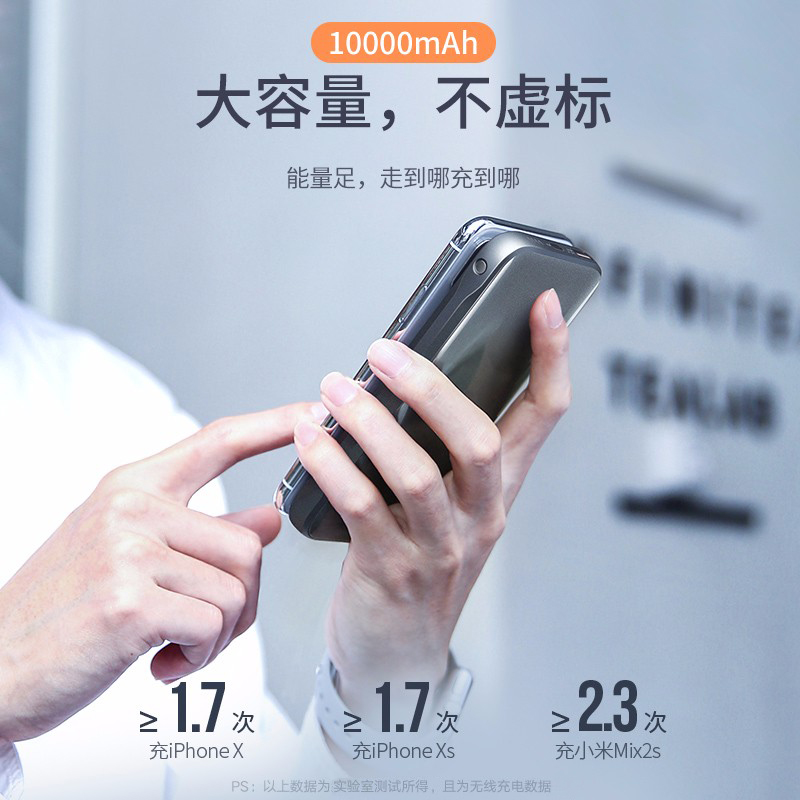无线充电宝10000毫安是一款支持无线+有线快充的便携充电宝。